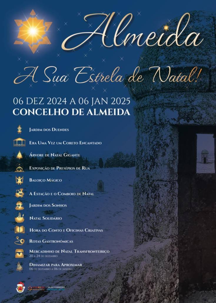 A magia do Natal está a chegar ao Município de Almeida com diversas atividades dirigidas a toda a família. O concelho irá transformar-se num palco de experiências natalícias a serem vividas por miúdos e graúdos, pela população e por todos os visitantes. “Almeida, a Sua Estrela de Natal” irá integrar na sua programação um conjunto de iniciativas que vão fazer valer a pena uma visita a este território, nesta altura do ano. A partir do dia 06 de dezembro serão acendidas as luzes de Natal em todo o concelho criando um ambiente festivo e acolhedor durante a época natalícia.