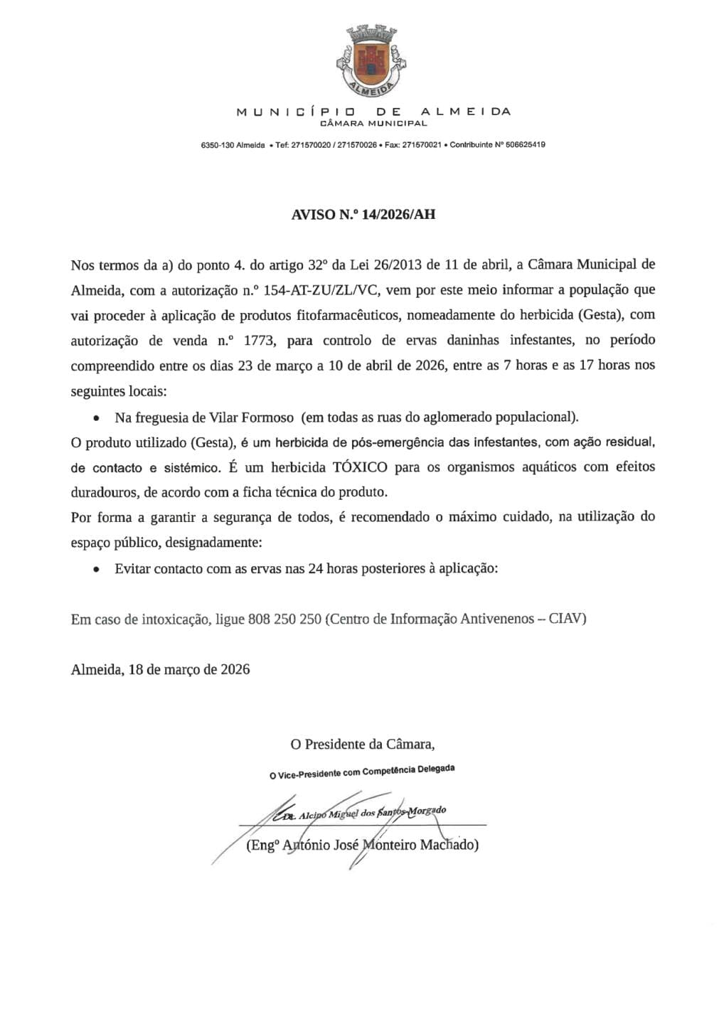 Aplicação de Herbicida na Freguesia de Vialr Formoso.