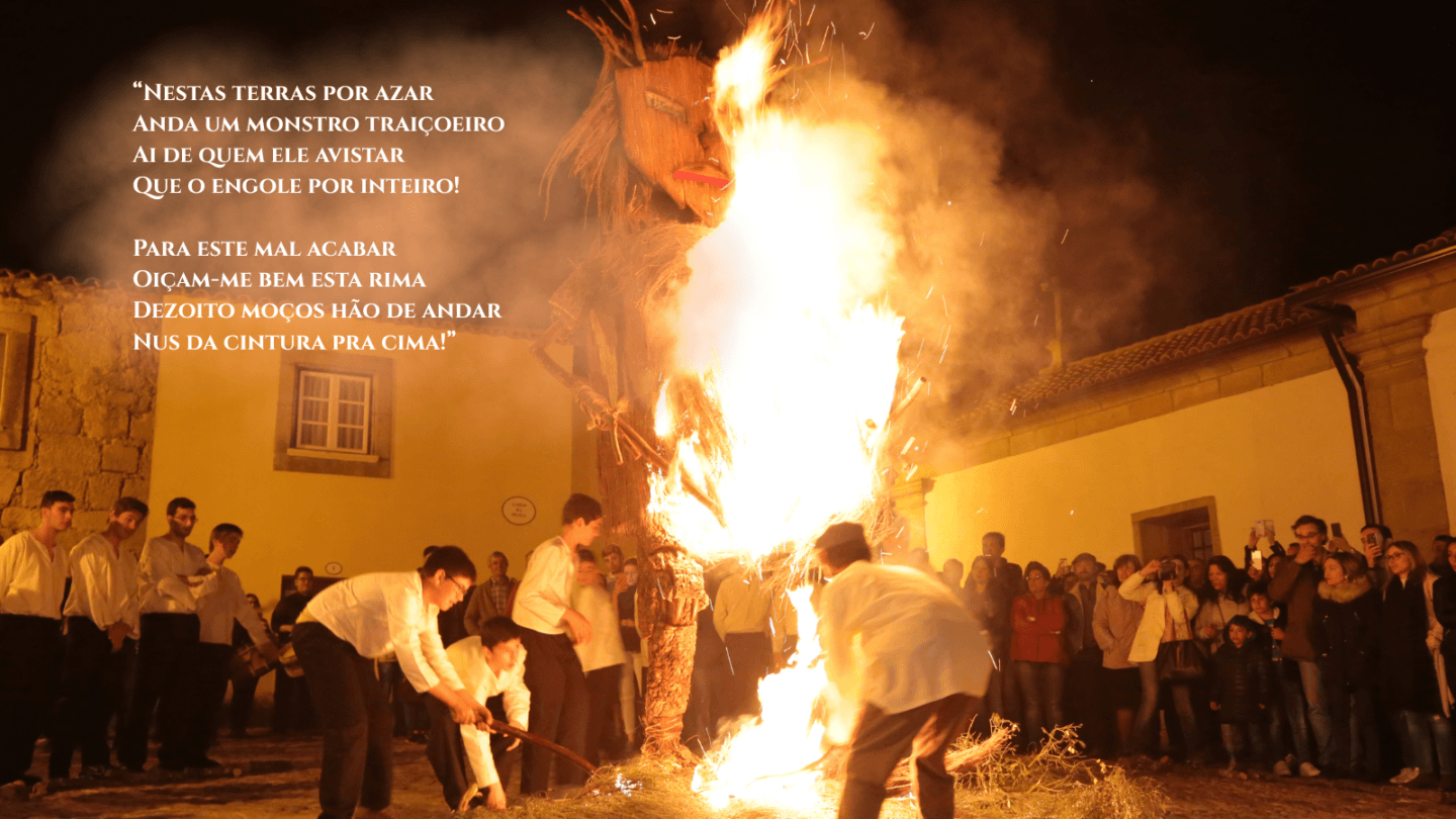 E assim o fizeram. Os homens das aldeias vizinhas, nus da cinta pra cima, dirigiam-se em romaria para Castelo Mendo. Ali juntavam-se todos e a procissão dos encoiros caminhava à Sacaparte. Quando chegavam lá, recitavam este verso: