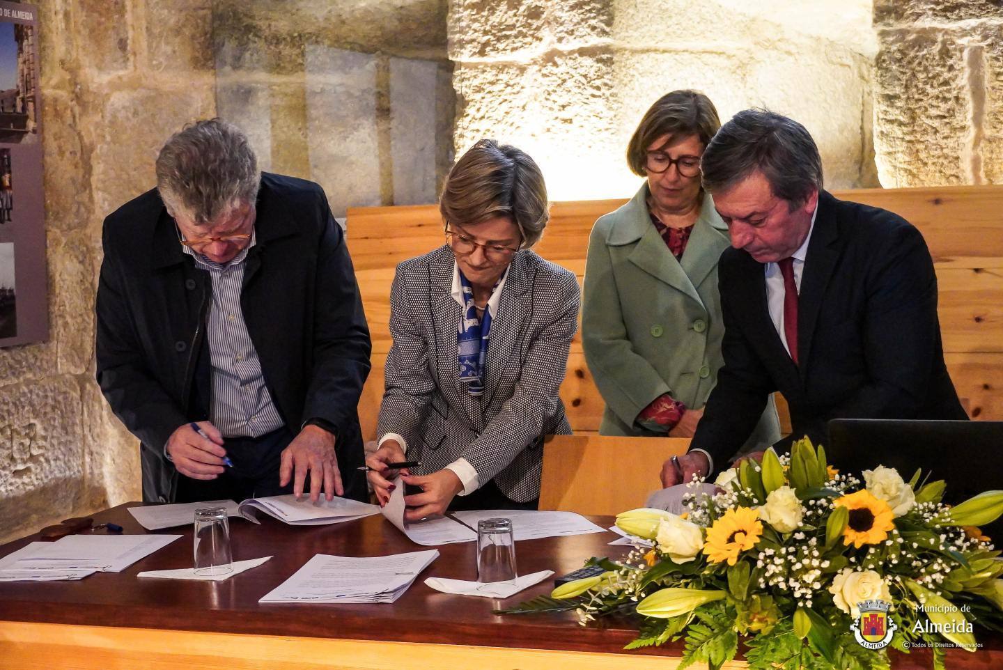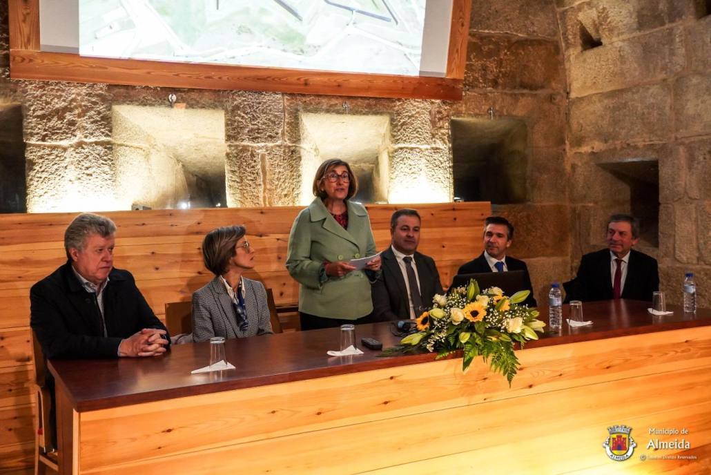 Esteve presente hoje, 27 de novembro, em Almeida a Secretária de Estado da Cultura, Dra. Isabel Cordeiro, acompanhada do Diretor Geral do Património Cultural, Arquiteto João Carlos dos Santos e da Diretora Regional da Cultura do Centro, Dra. Suzana Menezes para assinatura do Contrato Interadministrativo de Cooperação destinado a financiar a realização do projeto de investimento de consolidação estrutural das Muralhas de Castelo Mendo.
