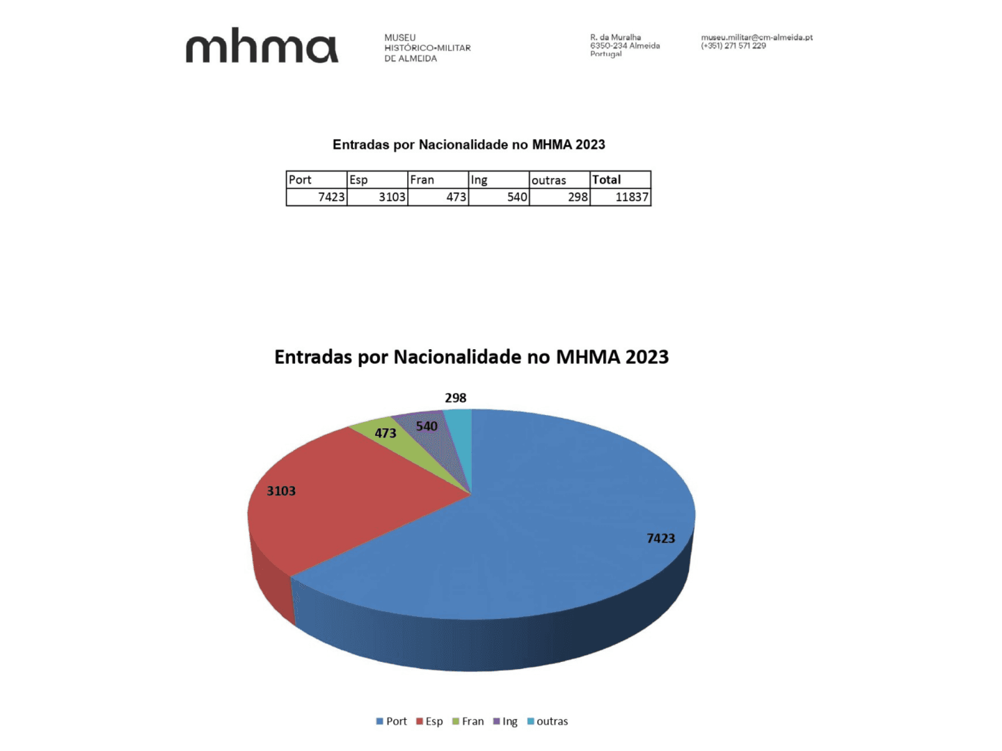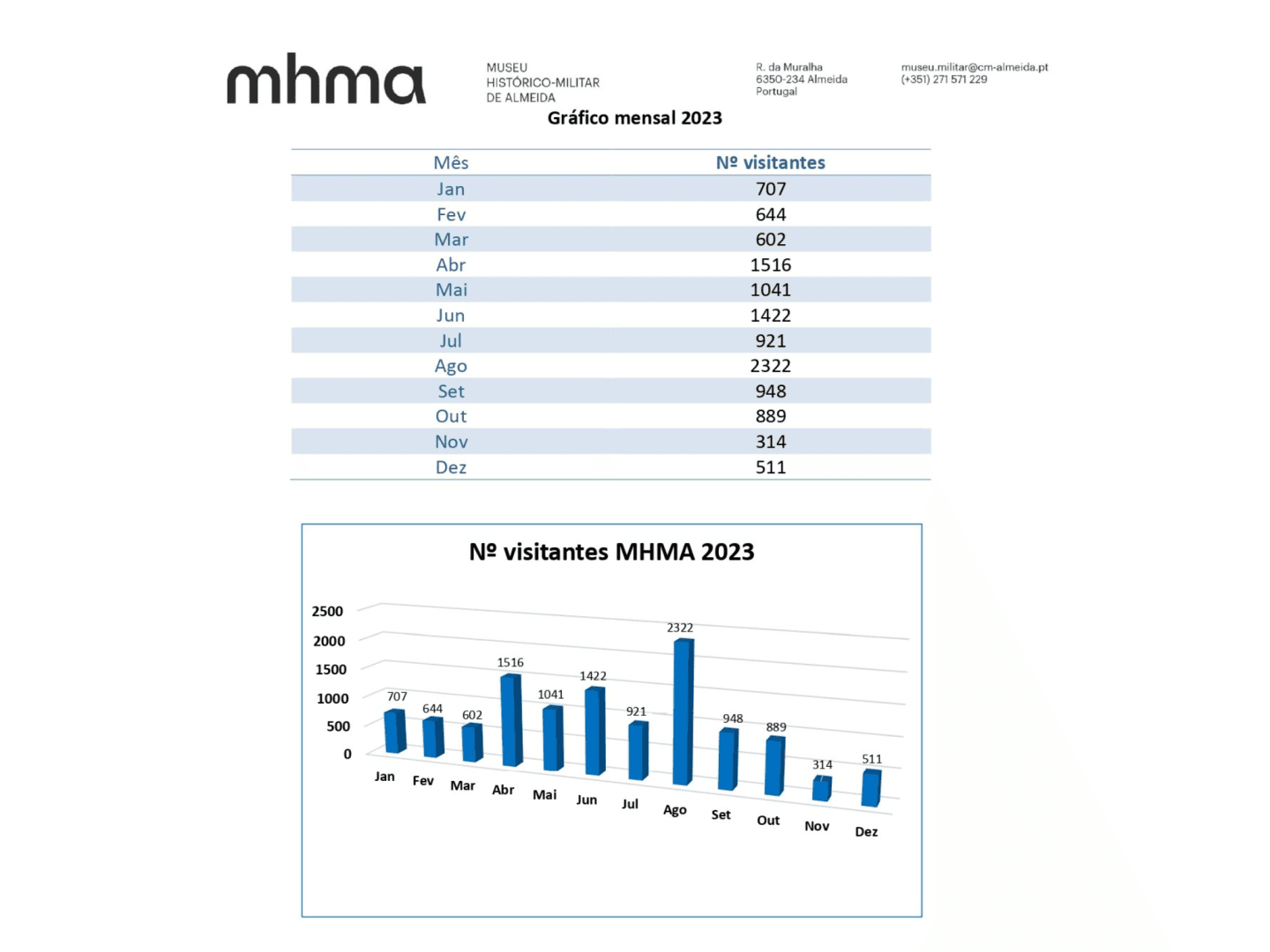 O Museu Histórico-Militar de Almeida (MHMA) registou em 2023 um total de 11 837 entradas, havendo um acréscimo de 2 765 entradas relativamente ao período homólogo em 2022. Anotou-se uma maior afluência entre os meses de abril e setembro, com o mês de Agosto a registar o maior número de utilizadores mensais.