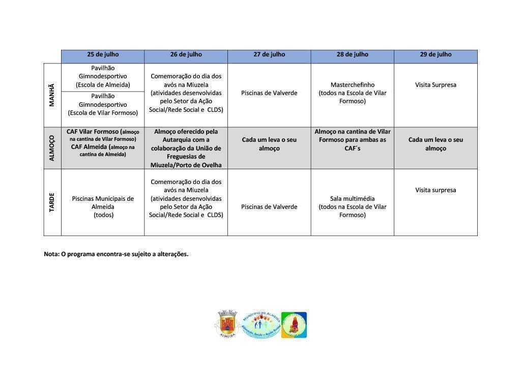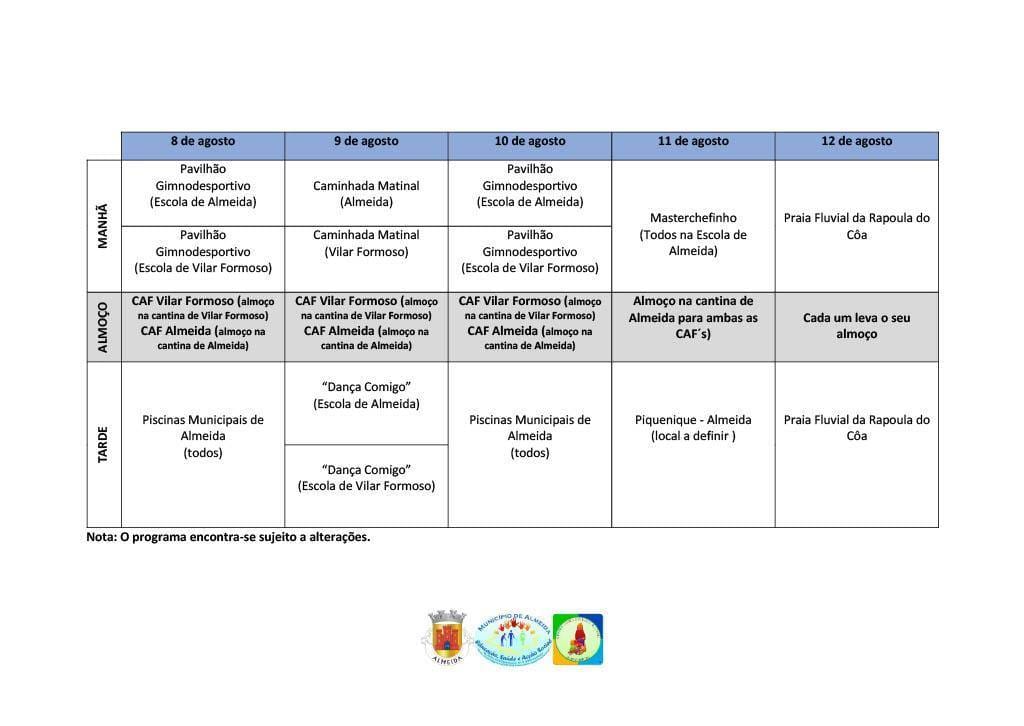 Face às necessidades dos encarregados de educação, o Município de Almeida promove atividades dirigidas a crianças e jovens do 1º Ciclo do Ensino Básico e 5º e 6º anos de escolaridade na interrupção letiva de verão (de 18 de julho a 12 de agosto).