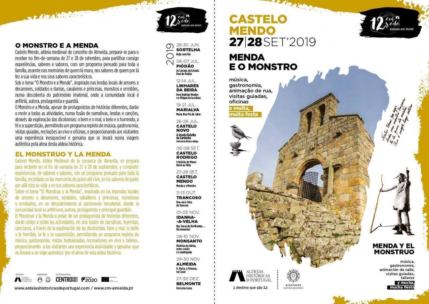 1 evento,![]() Castelo Mendo, 27 e 28 de Setembro - Menda e o Monstro! 12 em rede - aldeias em festa! Aldeias Históricas D' Portugal Consulte aqui o programa |