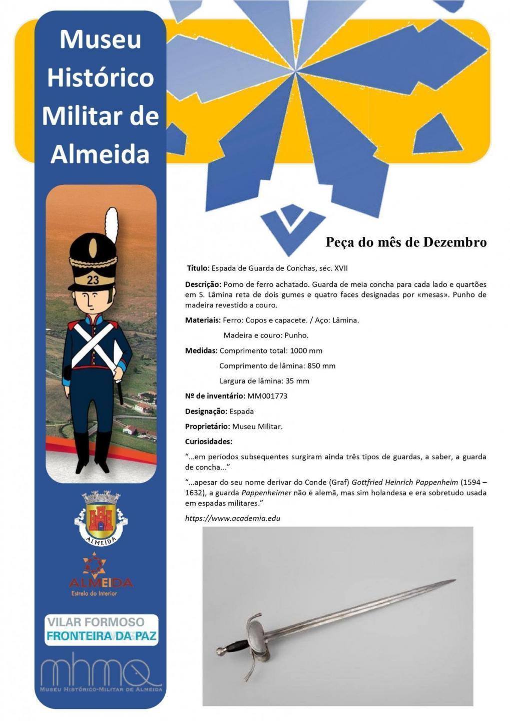 4 eventos,![]() Titulo: Réplica de elmo, COURAÇA ROMANA e avental. Descrição: “… loriga segmentada composta por placas de ferro ligadas por tiras de couro interiores, que a tornava uma armadura flexível e eficaz…” Materiais: Ferro, bronze e couro. Nº de inventário: CMA003 Designação: “…COURAÇA ROMANA…” Curiosidades: “…eventualmente, o uso de armaduras segmentadas […] | |||||