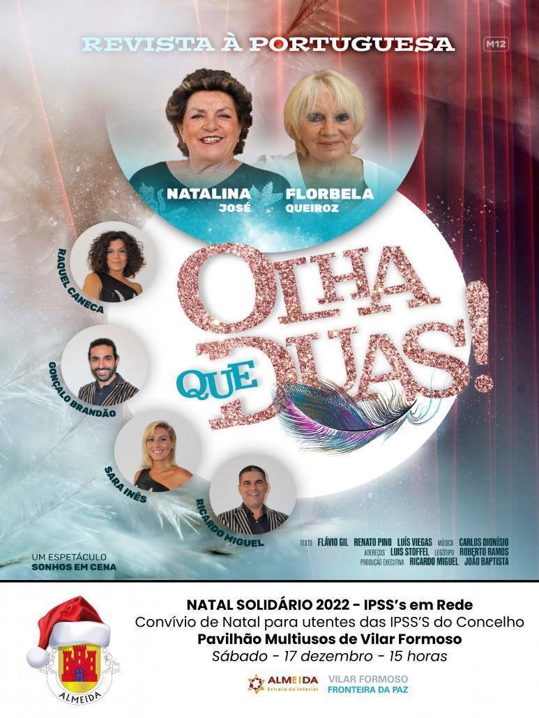 O evento terá lugar no próximo dia 17 de dezembro, pelas 15:00h no Auditório do Espaço Multiusos de Vilar Formoso, brindando os participantes com o espetáculo de Revista à Portuguesa “Olha que Duas”.