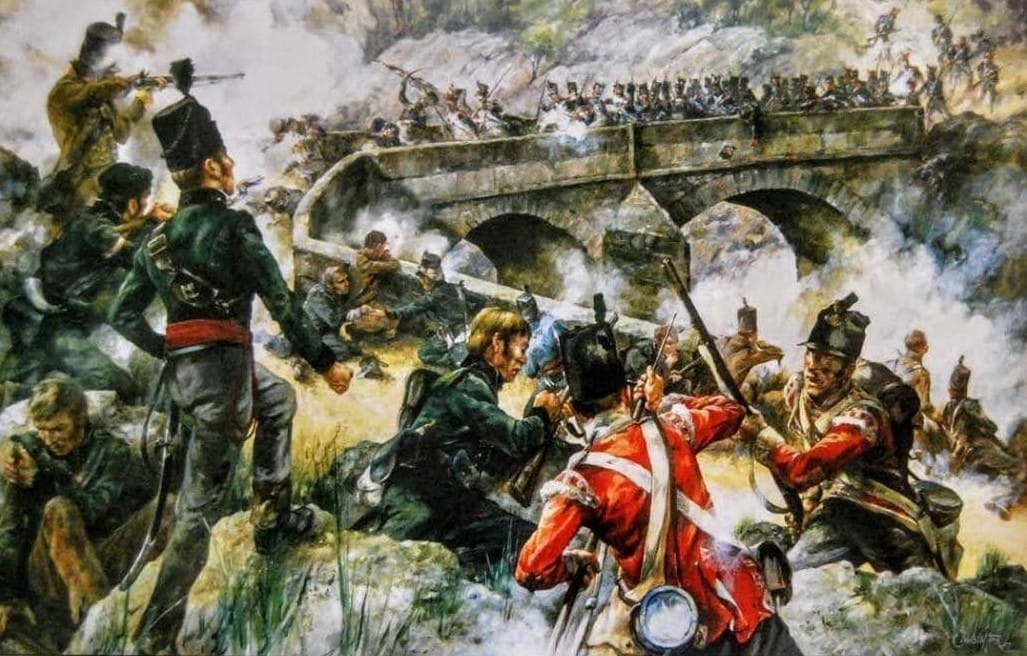 Imagem 1: La division légère repoussant les grenadiers du 66º de ligne sur le pont de la Côa – Composition de Christa Hook