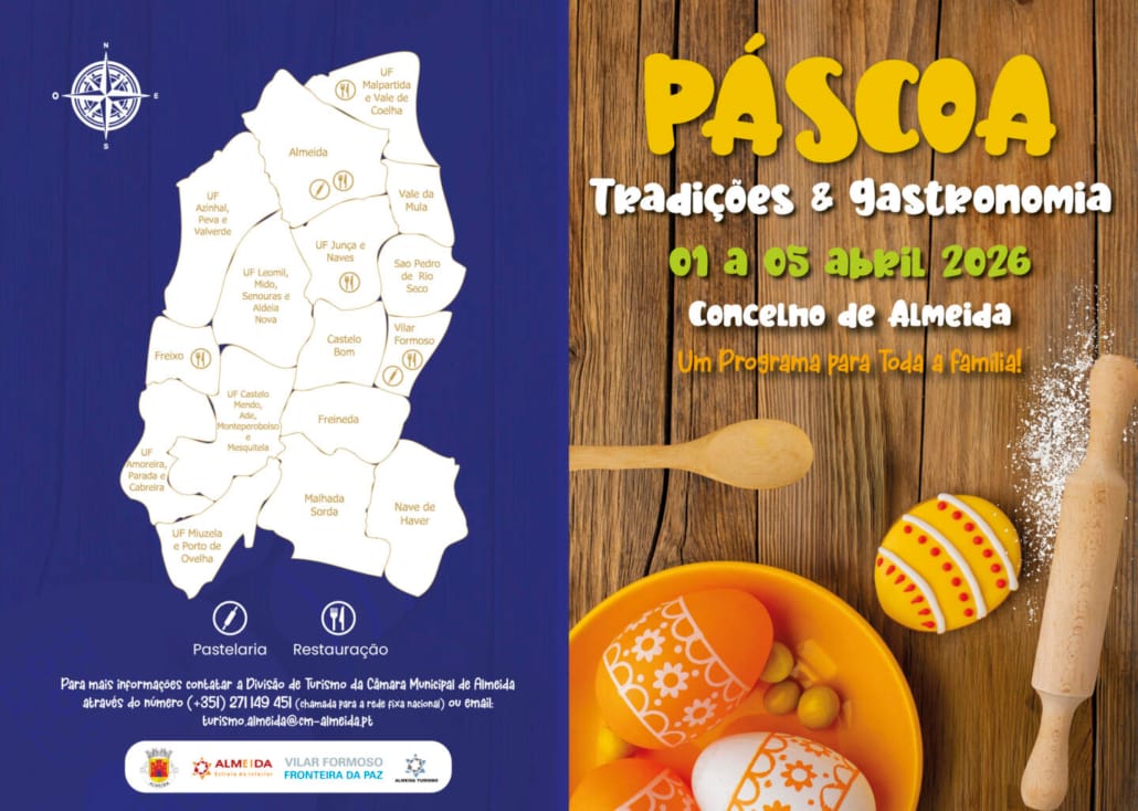 Entre os dias 01 e 05 de abril de 2026, o Município de Almeida, através da Divisão de Turismo, convida residentes e visitantes a vivenciar a Páscoa, unindo as tradições aos sabores autênticos da nossa gastronomia.