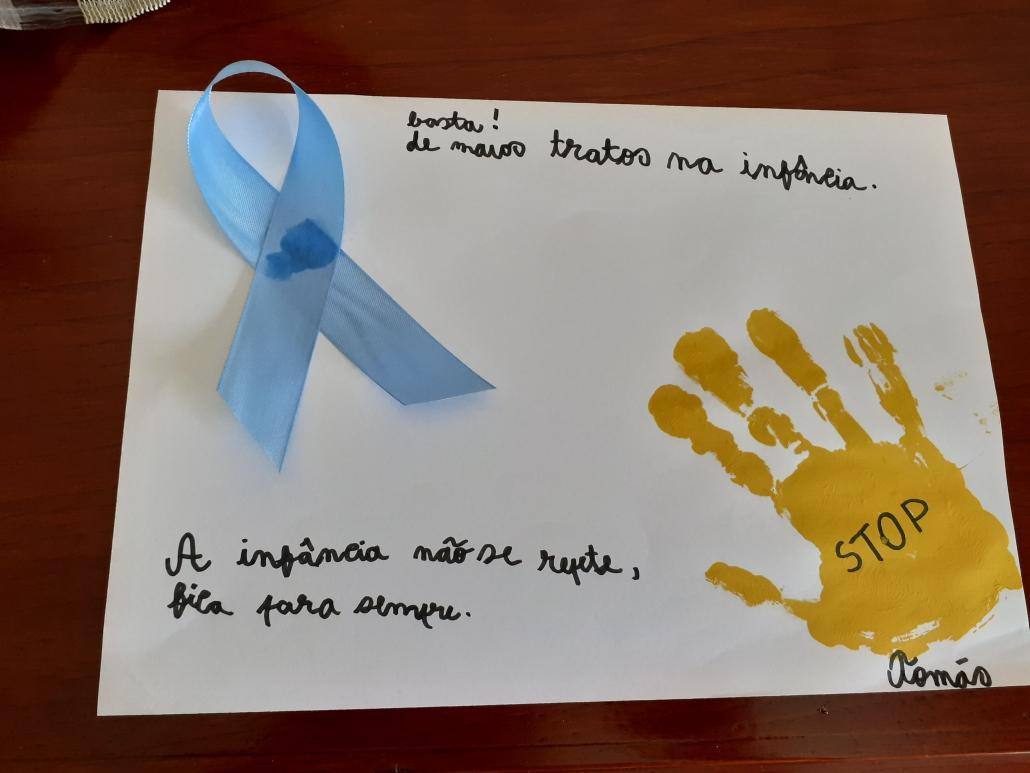 A corrente solidária, no Mês dos Maus Tratos na Infância, ficou adornada pelo laço azul e alcançou as diretrizes preconizadas, com a elaboração dos desenhos, relembrando que Educar com Amor é dizer Não à violência. Abraçar é a solução. Cuidar e proteger favorece um crescimento saudável e feliz de uma criança. Agir a favor do desenvolvimento harmonioso dos nossos filhos é a missão dos pais. Só podemos ouvir o bater do coração. A infância não se repete… e como ela for assim poderá ser o futuro das nossas crianças. Vamos todos responsabilizarmos pelo futuro das nossas crianças e continuarmos a fazê-las felizes e ajudarmo-las a ser confiantes e a crescer na/com segurança.