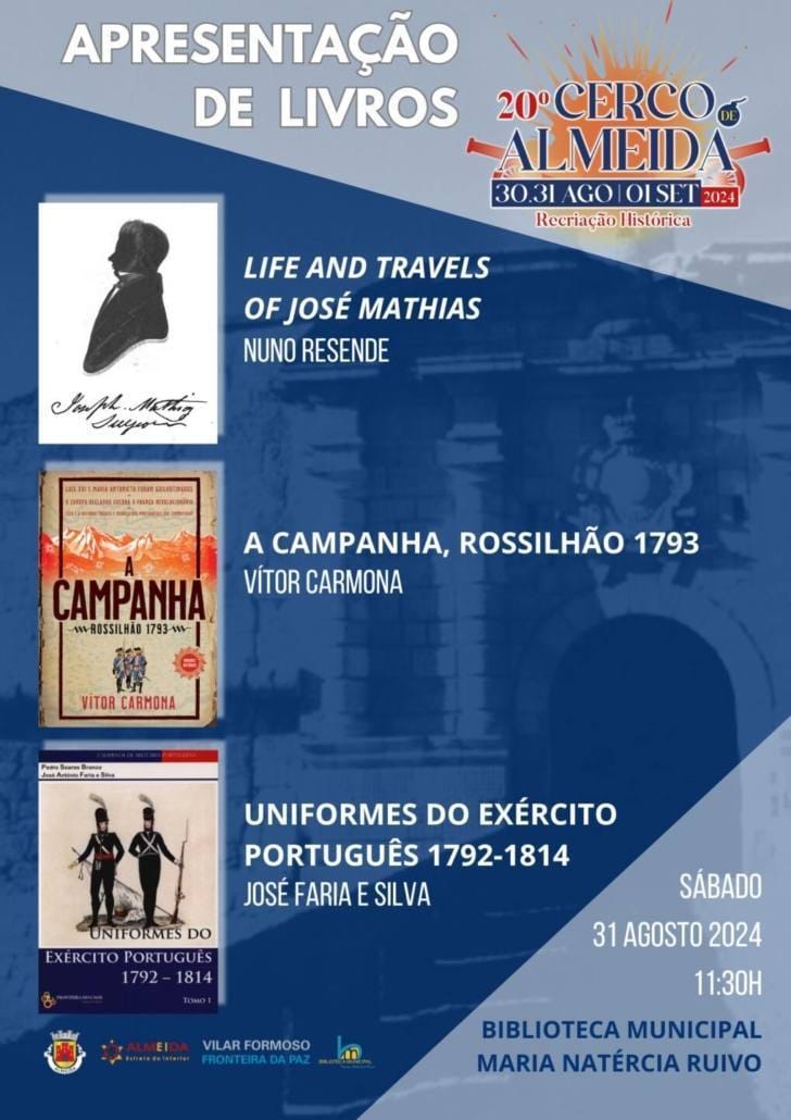 No contexto da 20.ª Recriação Histórica do Cerco de Almeida, sábado, dia 31 de agosto, às 11:30, será realizada uma sessão de apresentação dos livros: Life and travels of José Mathias por Nuno Resende; A Campanha: Rossilhão 1793 de Vítor Carmona; e Uniformes do Exército Português 1792-1814 de Pedro Soares Branco e José Faria e Silva.